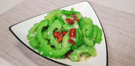 食材:苦瓜、大蒜、辣椒、食盐、生抽、白糖、香油、白醋